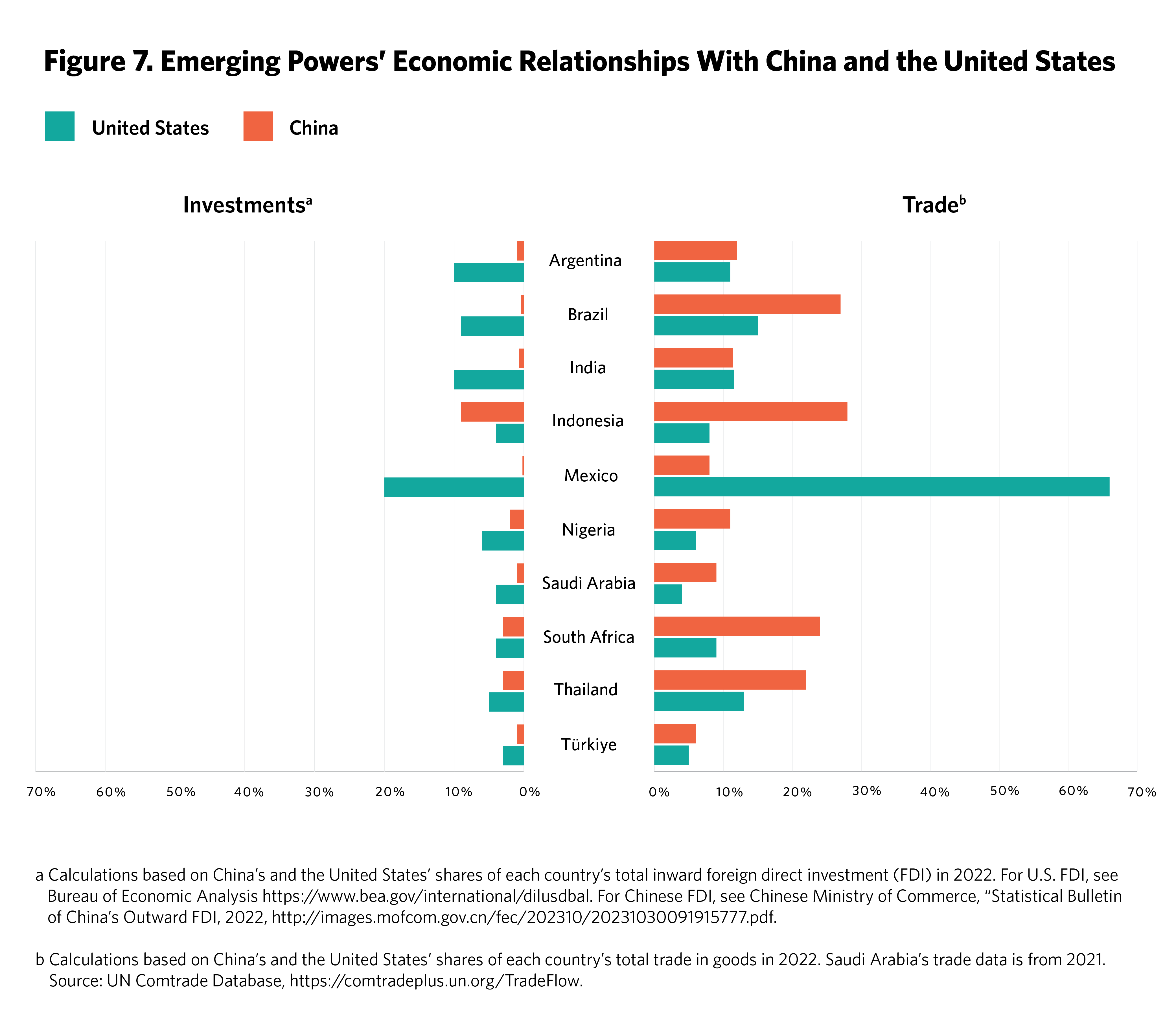 To assess the positions of these ten emerging powers on the war in Ukraine and on U.S.-China competition, we analyzed how they voted on several UN General Assembly resolutions, as well as their trade and investment patterns with China, Russia, and the United States. We also examined public statements by their leaders, the nature of their defense relationships, and their diplomatic behavior over time. In addition, we conducted off-the-record interviews with high-level diplomats from these countries about their positions on the war in Ukraine, China, and the international order. We sought to ascertain the extent to which these positions were shaped by their economic interests, domestic politics, geographies, visions of the international order, Chinese or Russian propaganda, and concerns for democracy and human rights abroad. We also held off-the-record roundtables with key senior officials from the White House, in an effort to understand their thinking and perspectives on the policy challenges for the United States. In the process, we published individual case studies for each country.7